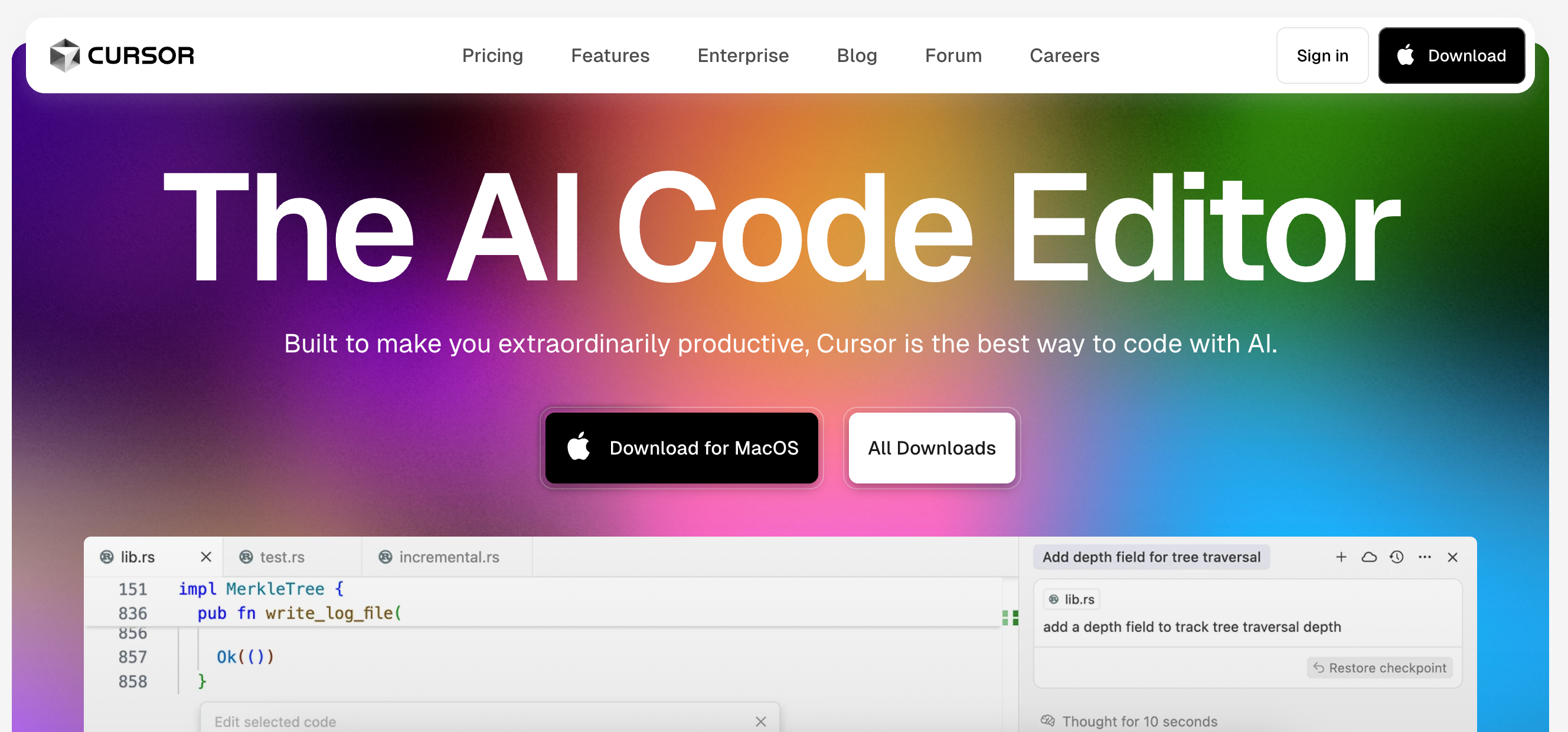 Cursor helps you write and fix code faster with smart suggestions and easy-to-use features, making programming more efficient for everyone.