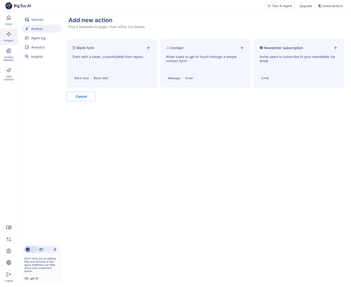 Big Sur AI: Best for high-quality AI agents across any industry, plus the only option to offer AI content marketing tools