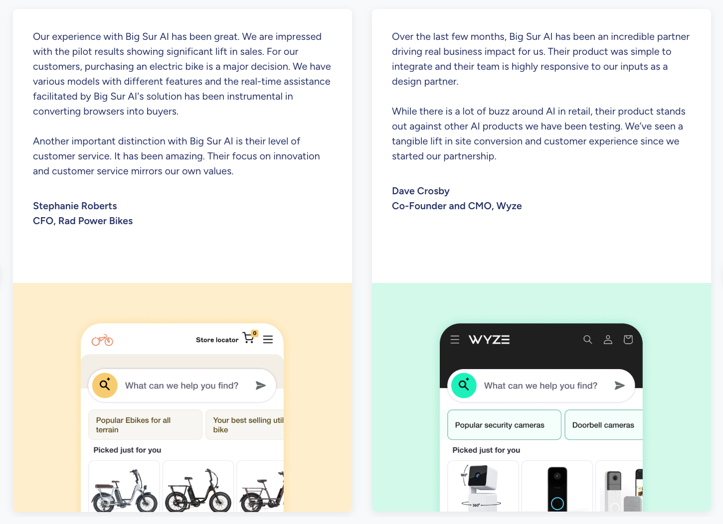 Big Sur AI has an AI Website Agent offering for companies in any industry, as well as an AI Sales Agent specifically for e-commerce.
