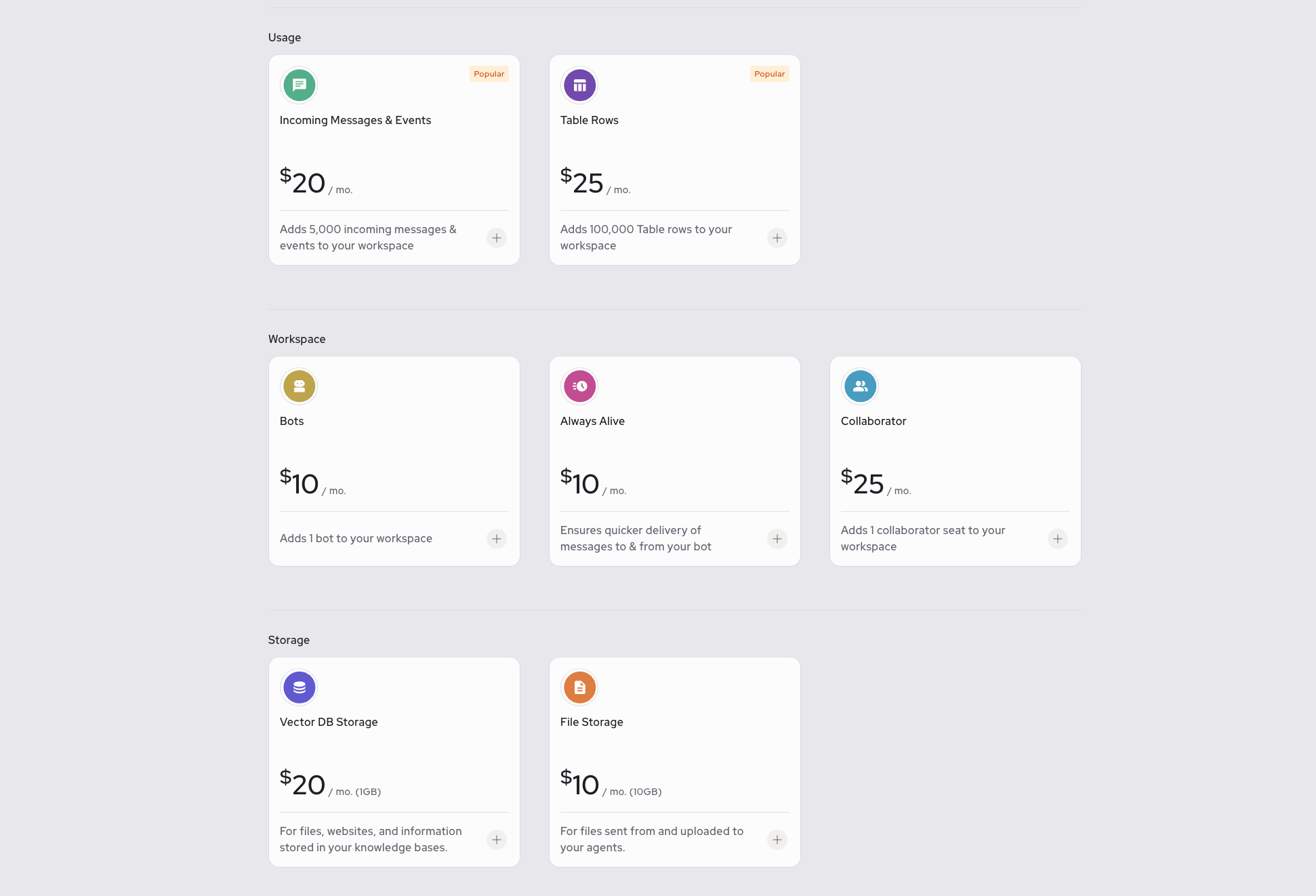 Big Sur AI’s pricing gives you more volume than Chatbase, and doesn’t have as many volume paywalls that force you to upgrade (more on this below).
