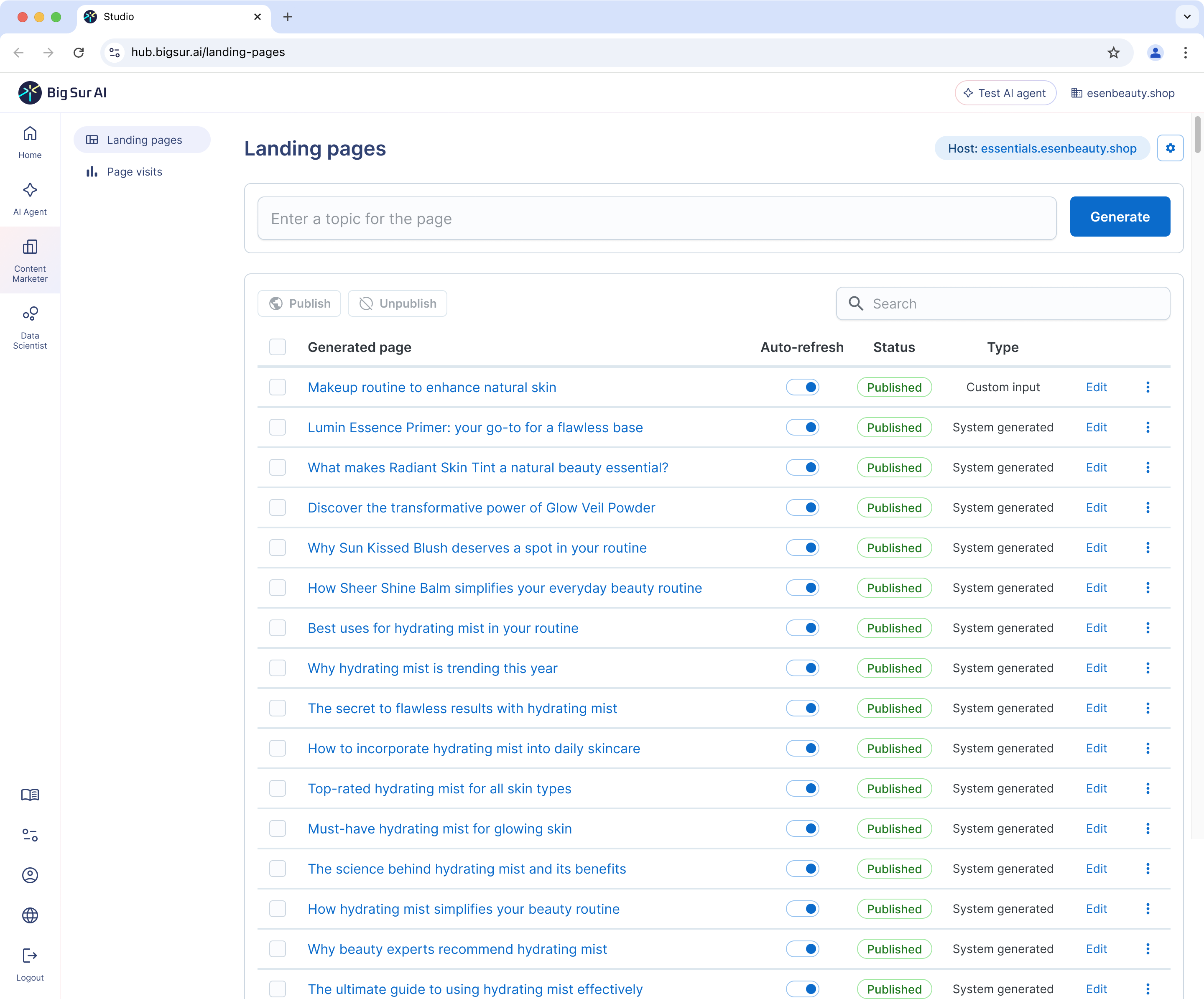 Not only does Big Sur AI offer AI agents for your website, but we also offer tools to drive more traffic with our AI Content Marketer. Automatically generate and optimize your landing pages for both SEO rankings and sales conversions.