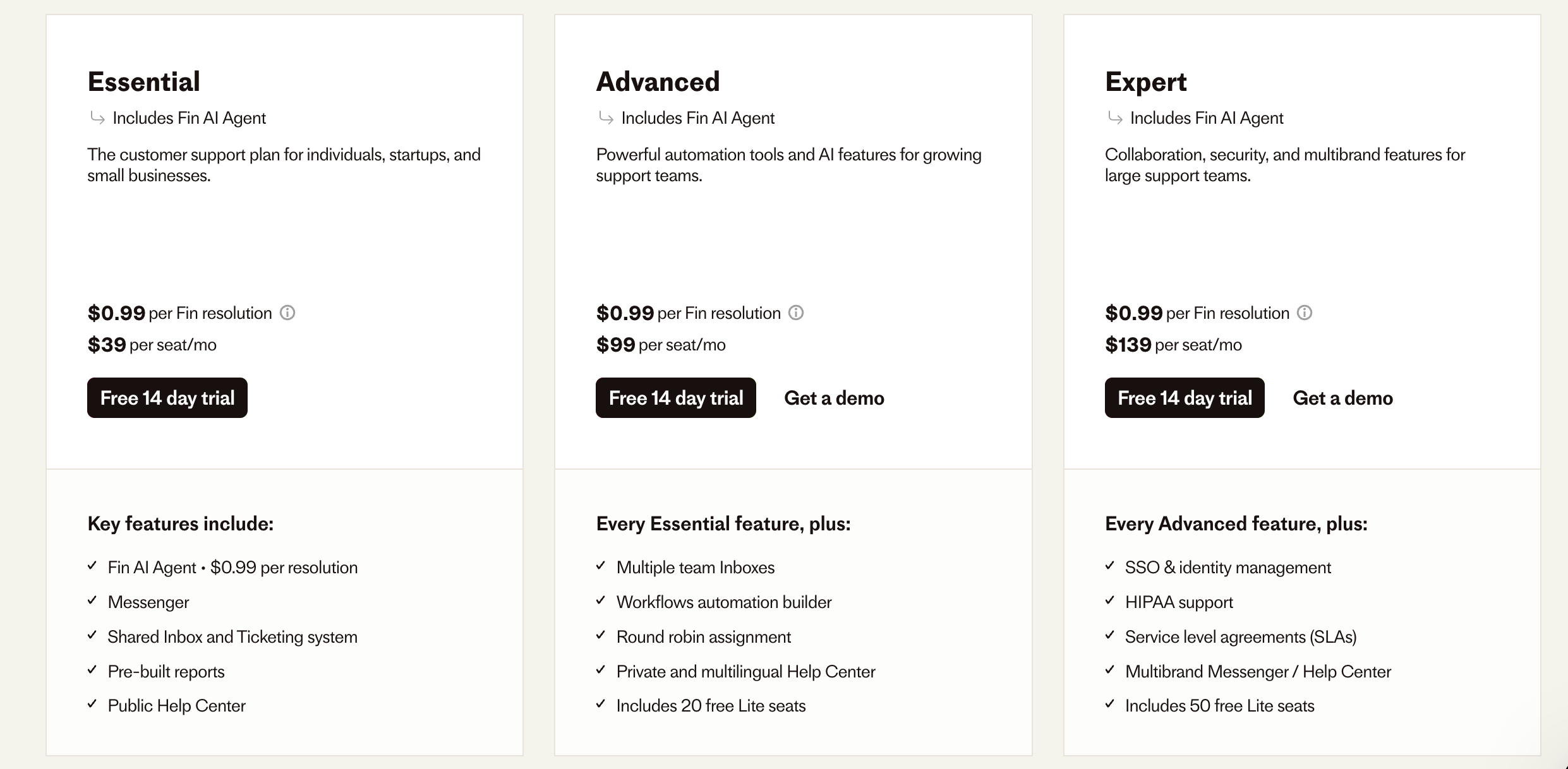 | Intercom | $39/seat/month | AI-powered support, omnichannel messaging, Fin AI agent | ❌ No |
