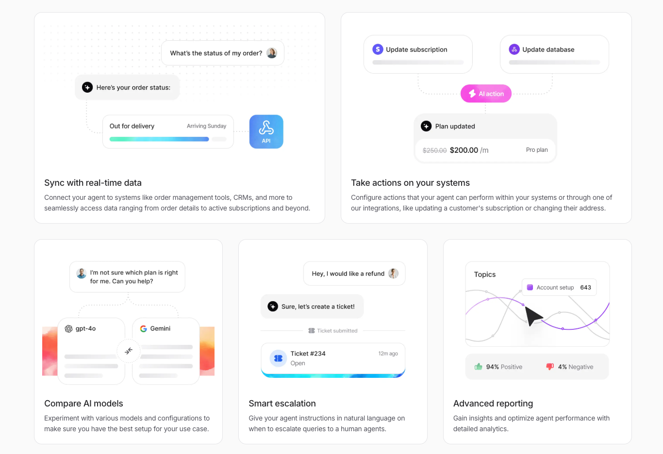 ✅ Instant answer quality without work on your side: Automatically syncs your website’s back-end data (products, services, analytics, customers, traffic patterns, documentation, etc.) to tailor the AI agent to your content and offerings.
