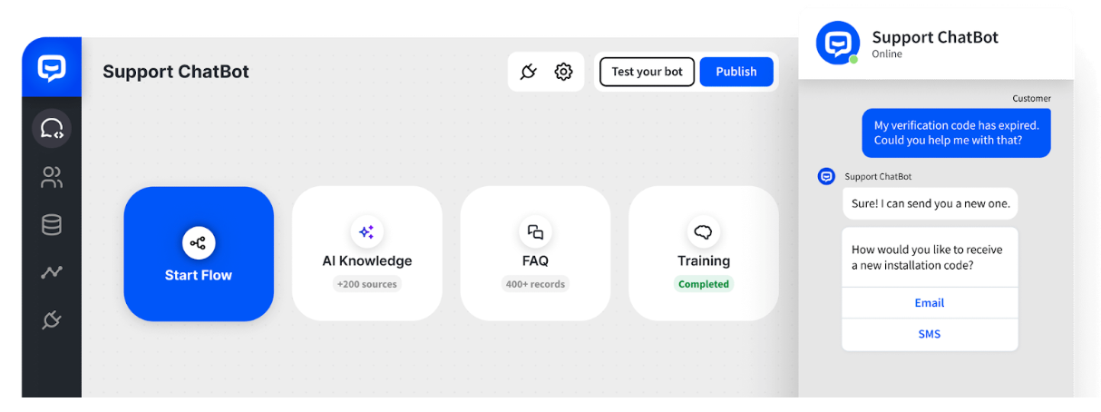 The bot is one of the best on the market because it offers a no-code chatbot builder that integrates with various platforms and channels, allowing you to customize it to your needs.