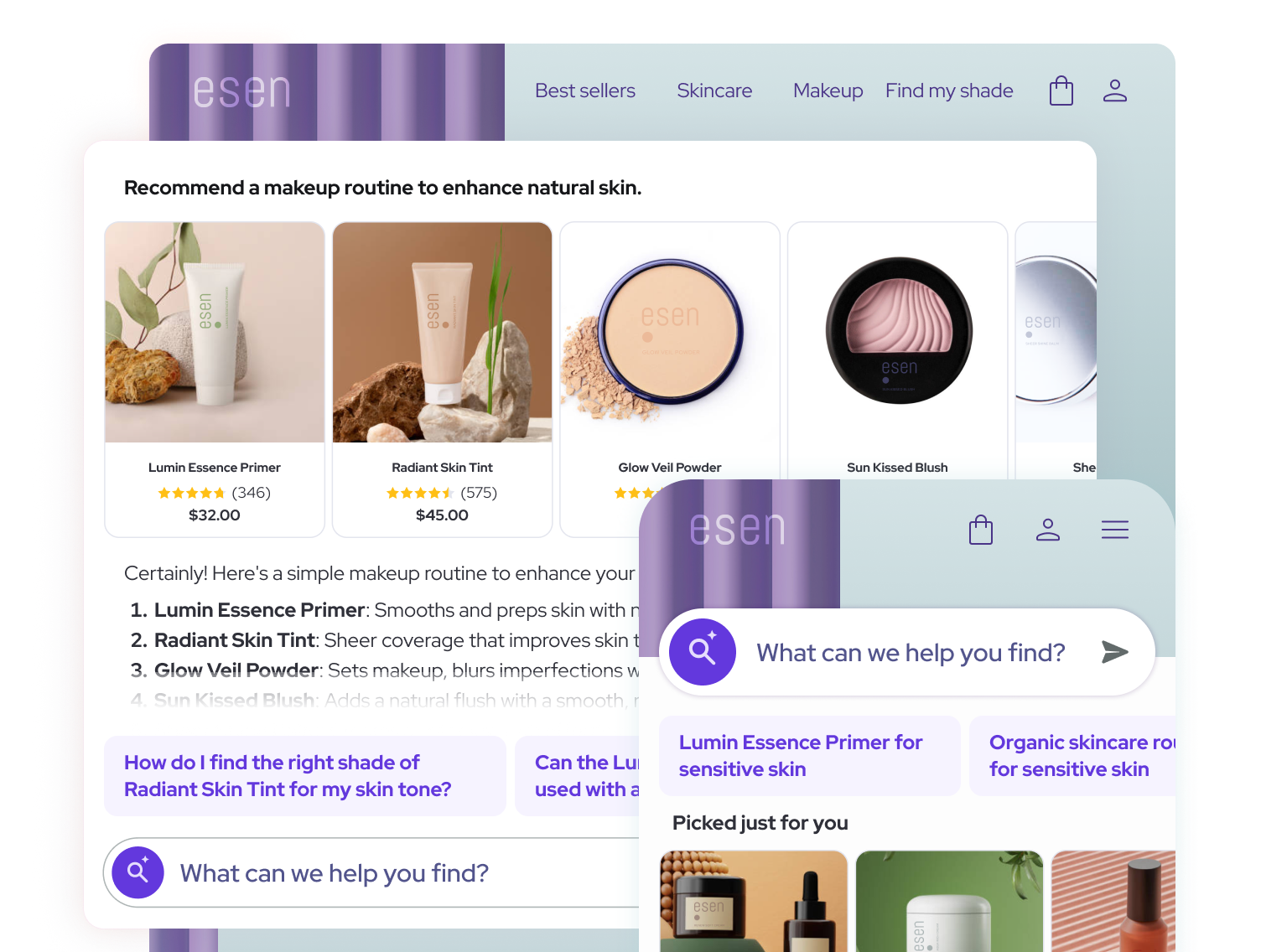 Example: Esen utilizes Big Sur AI to recommend make-up routines to customers with specific demands, such as a make-up routine that enhances the natural skin.