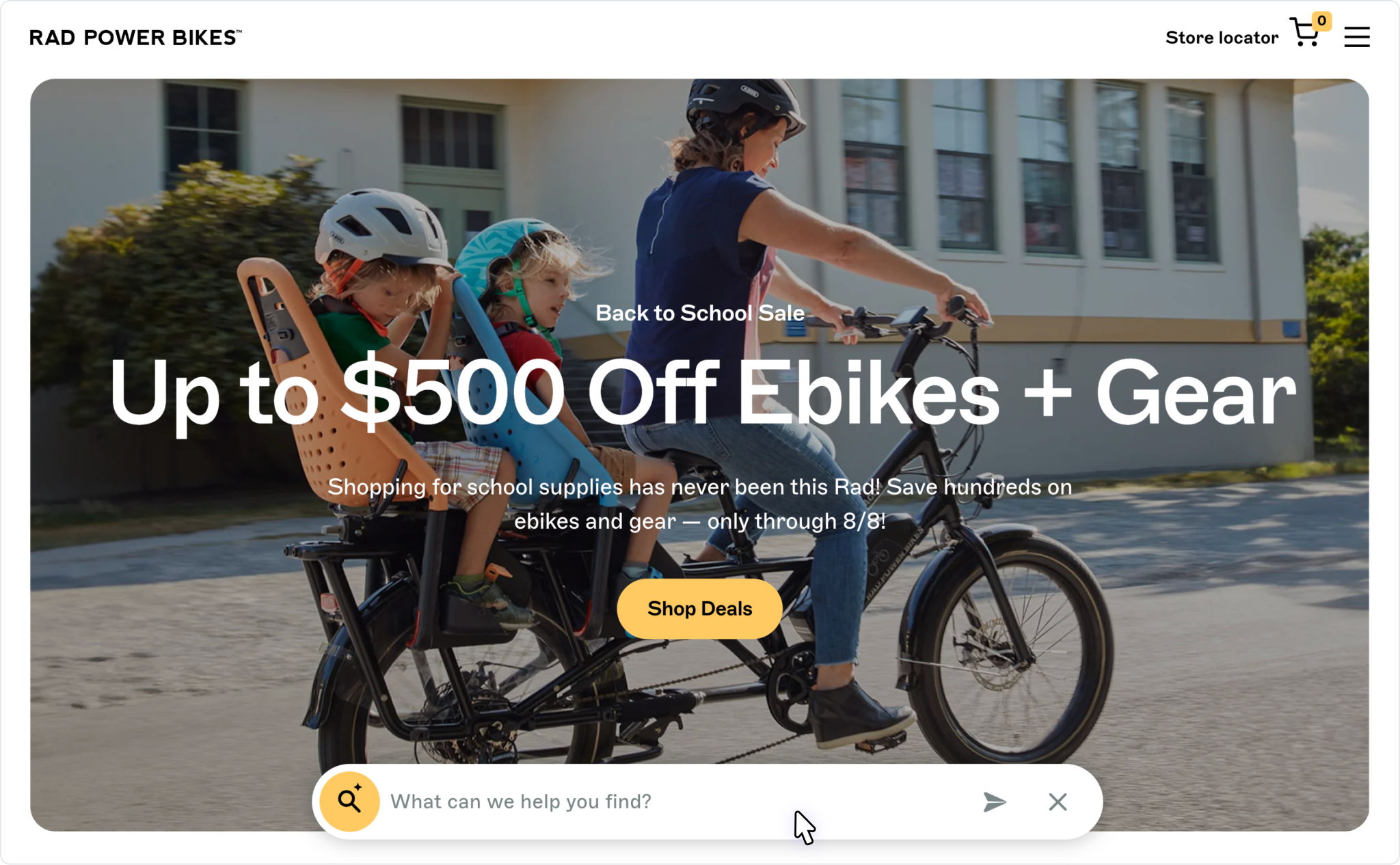 Example: Rad Power Bikes integrated Big Sur AI's Sales Agent to help consumers find the right e-bike for their needs.