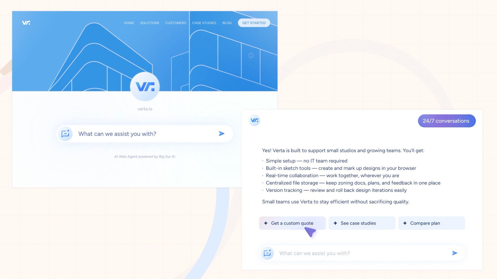 They interact naturally with visitors anywhere on your site, providing relevant, helpful answers that guide users toward their goals → whether that’s making a decision, finding information, or completing an action.