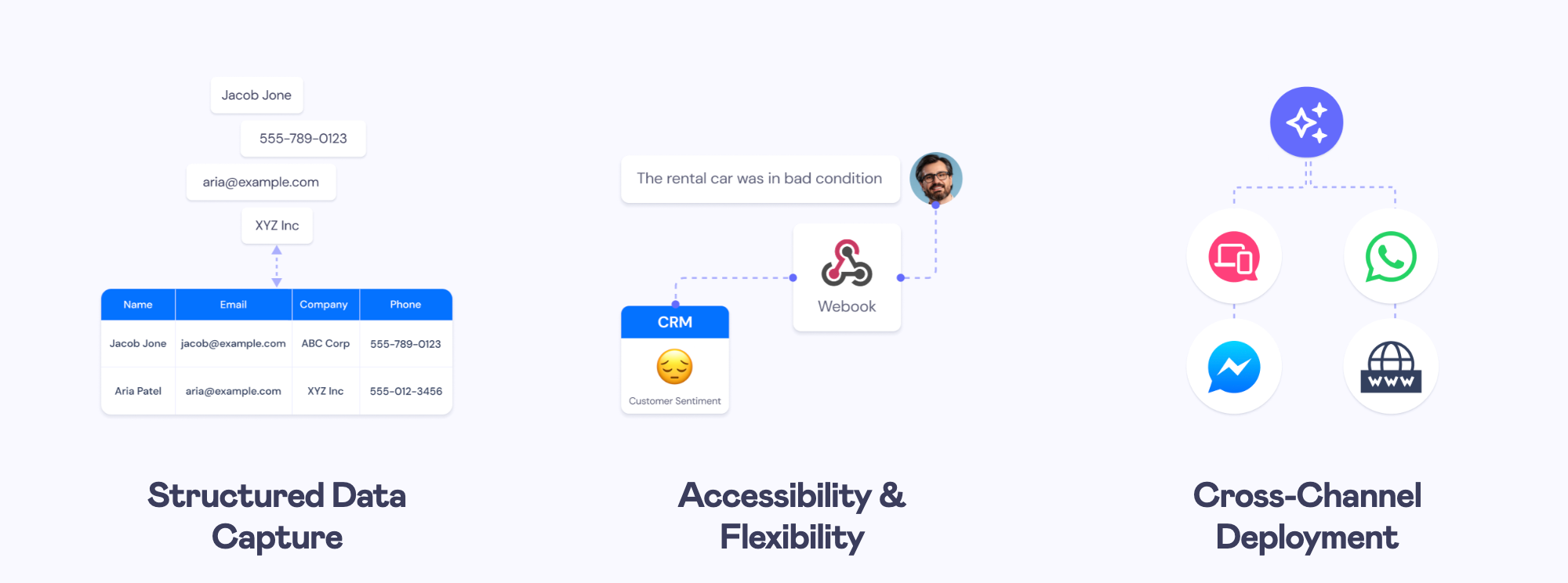 Designed as AI-native from the ground up, our agents deliver deep personalization by syncing your websiteâs unique content and proprietary data in real time. They interact naturally with visitors anywhere on your site, providing relevant, helpful answers that guide users toward their goals â whether thatâs making a decision, finding information, or completing an action.