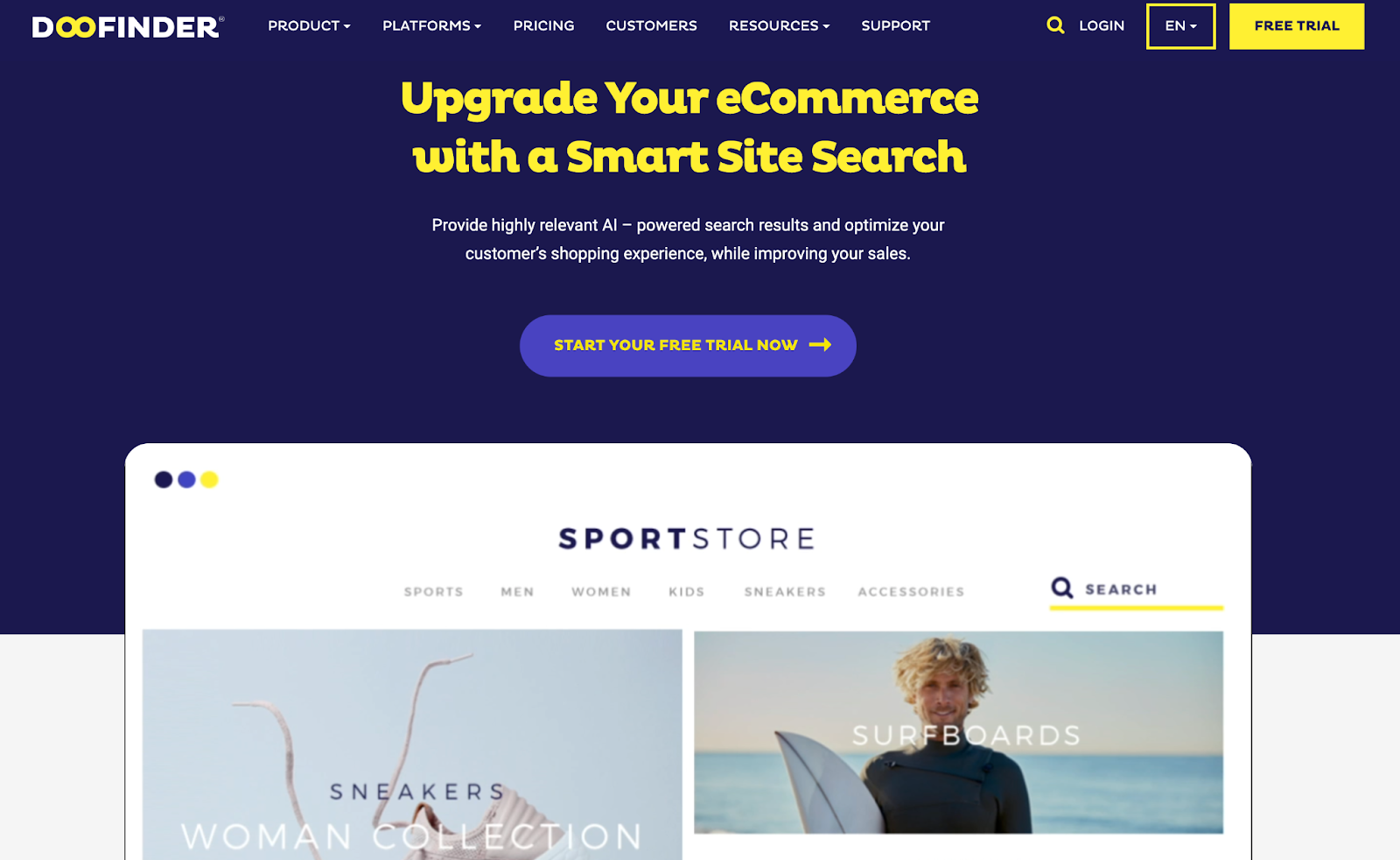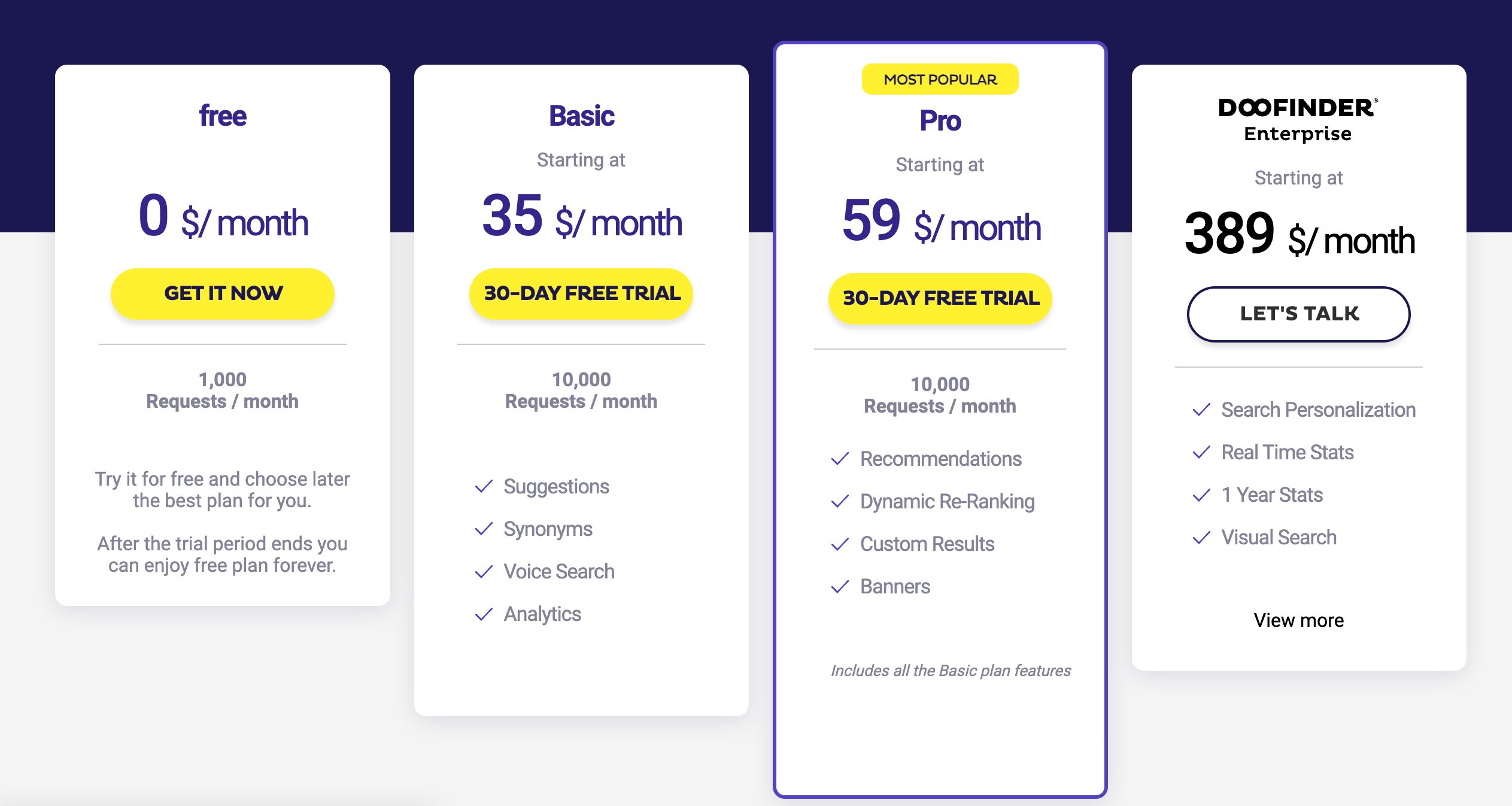 Doofinder offers a 30-day free trial and a limited free plan subsequently.