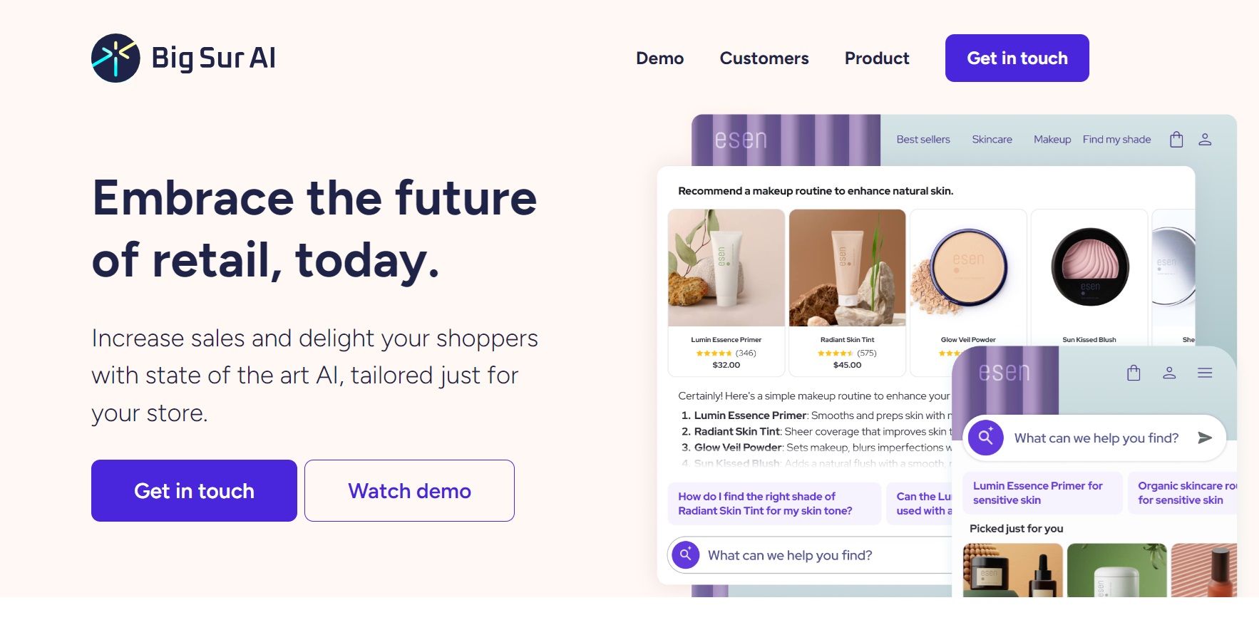 Big Sur AI empowers brands to provide their customers with real-time assistance and personalized product recommendations.