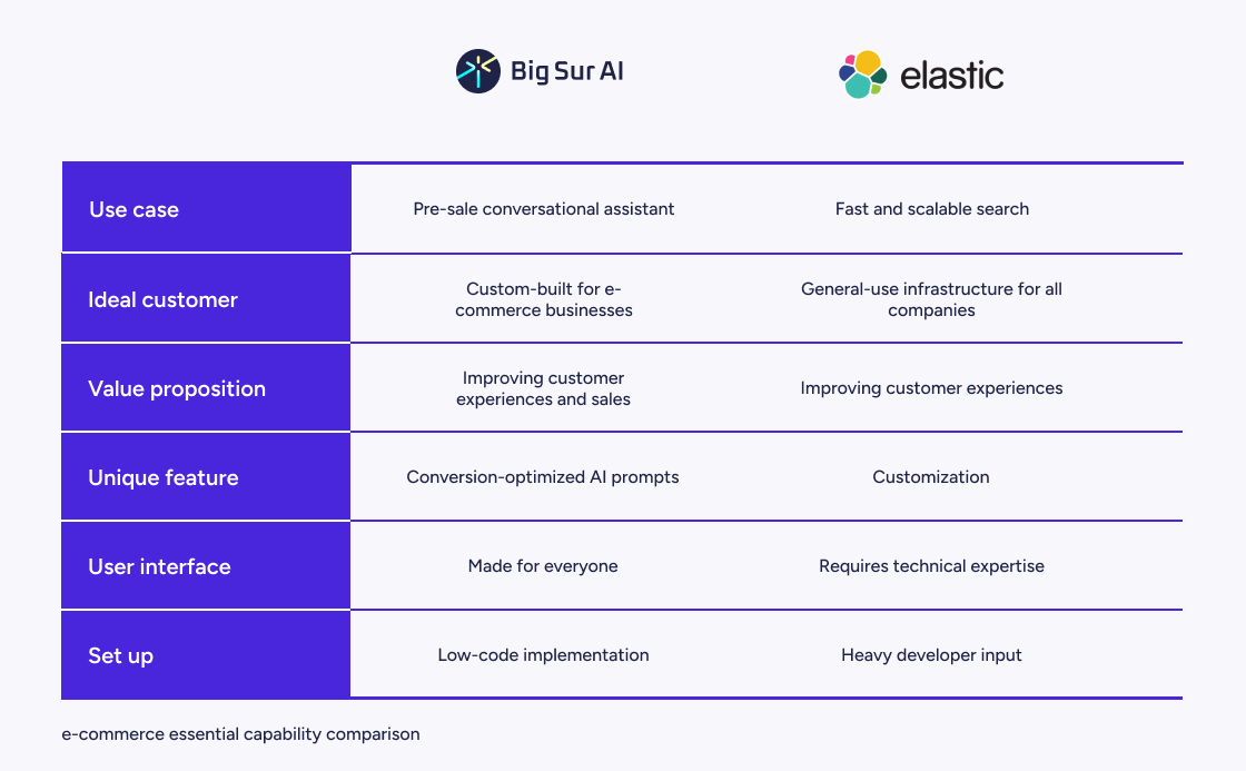 Unlike Elasticsearch, Big Sur AI does not cater to every use case — it focuses on e-commerce businesses.