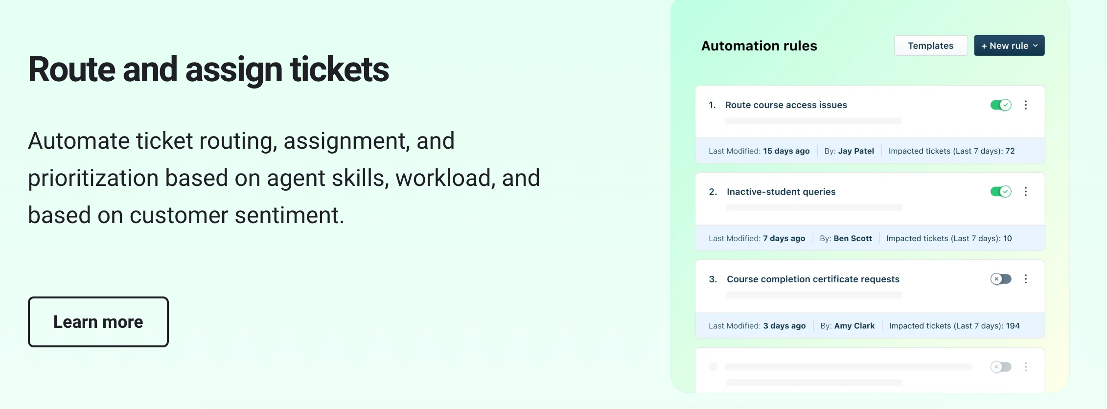 Route complex conversations from AI to human reps using custom rules. Assign topics to the right team members, set SLAs, and automate reassignments if someone’s out or busy 👇