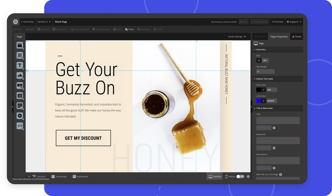 Its core strength is conversion optimization: Everything about Unbounce—from its drag-and-drop editor to its AI-powered tools—is designed to help you convert more visitors into leads, signups, or customers.