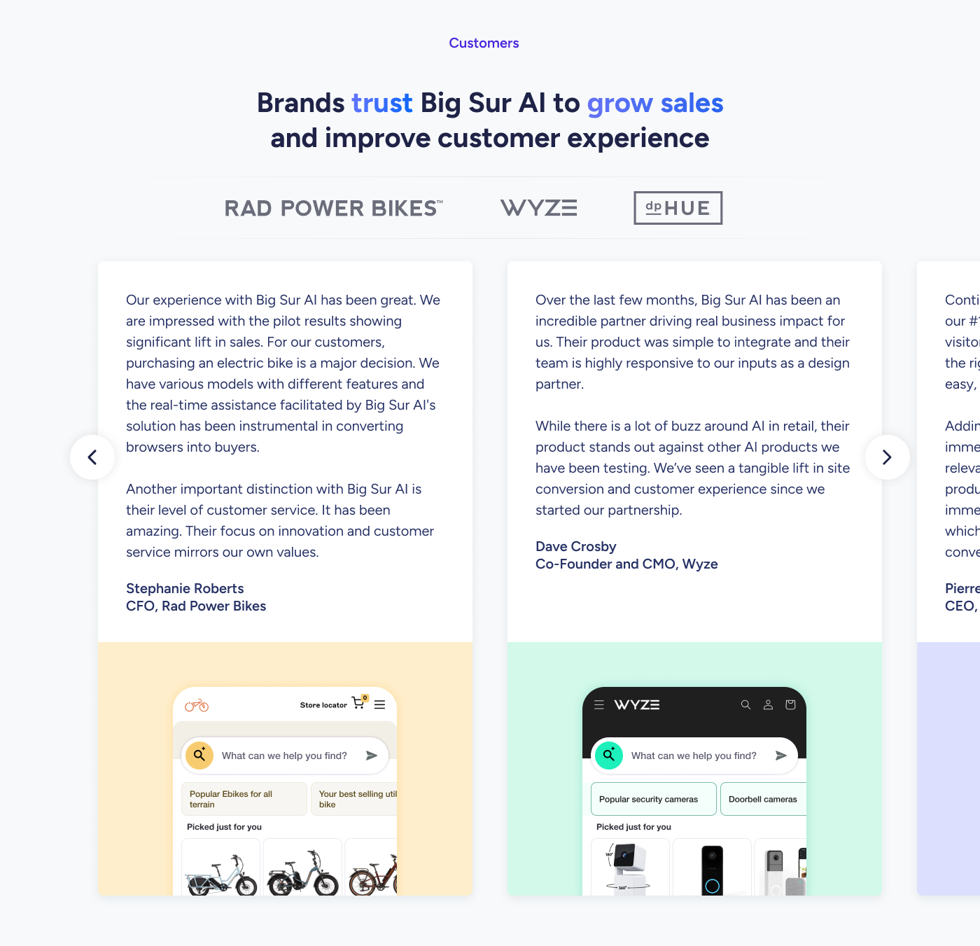 Big Sur AI (that’s us 👋) is an AI-powered shopping assistant and personalization engine for e-commerce brands.