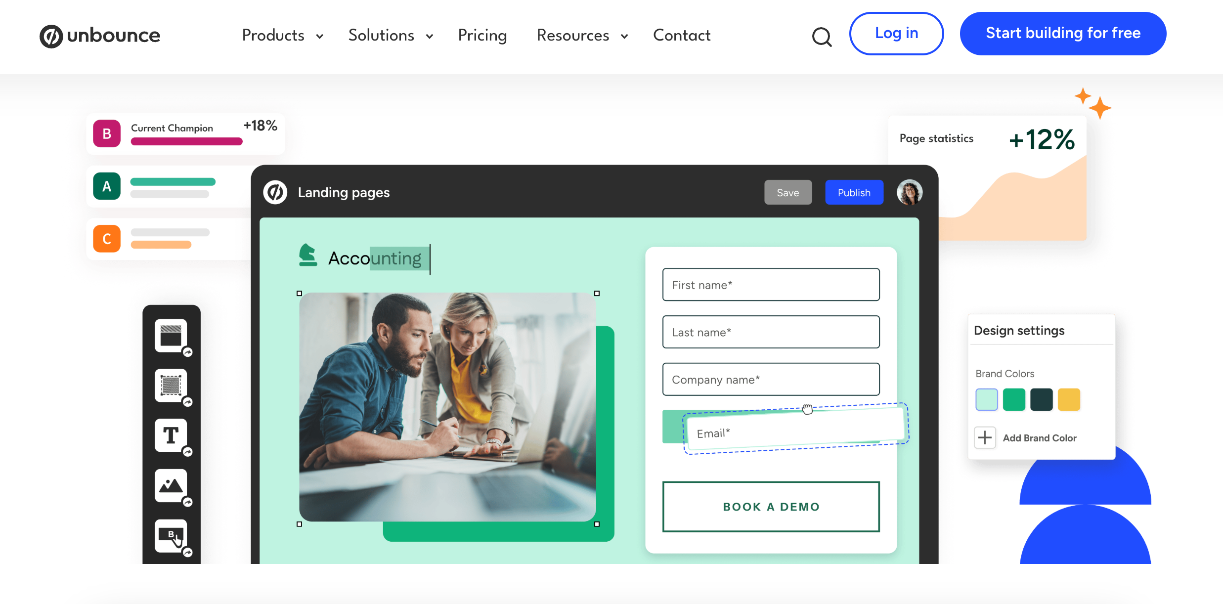 While some builders focus on aesthetics, Unbounce is laser-focused on performance. Its tools are optimized to help you increase signups, sales, or leads—making it a favorite for paid ad landing pages, product launches, and high-intent traffic.