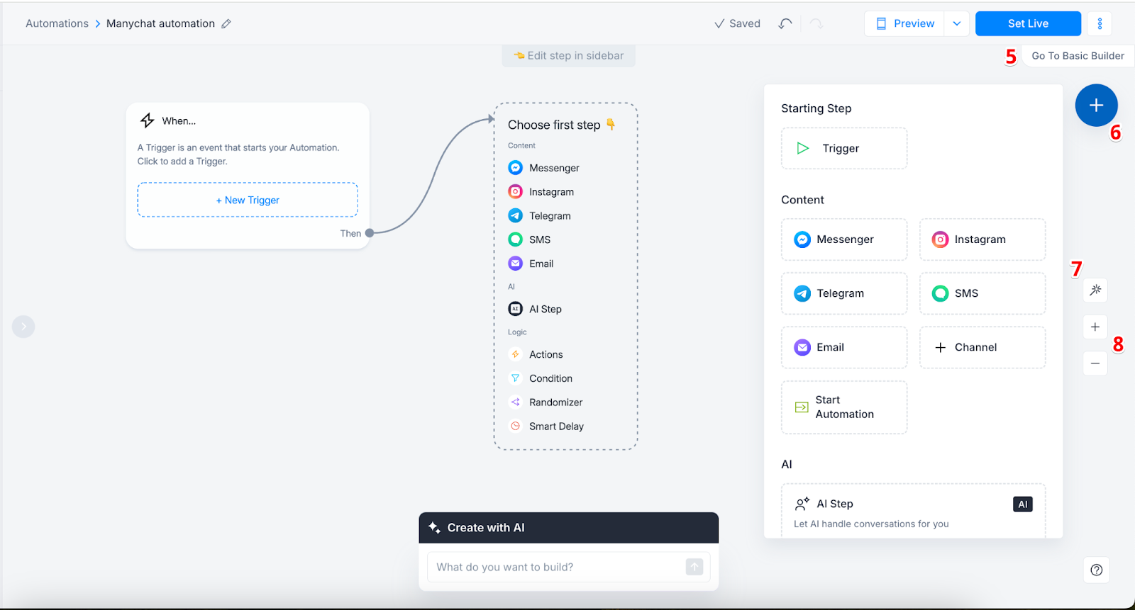 The core of ManyChat is its visual Flow Builder, which lets you design complex chatbot automations for channels like Instagram, Facebook Messenger, WhatsApp, and SMS 👇