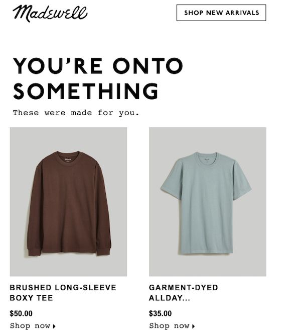 For example, Madewell took their shoppers’ previous purchasing behavior to offer product recommendations.