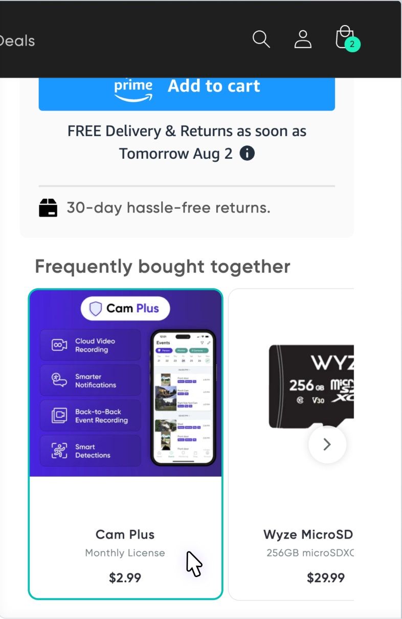 Brands like Wyze use product recommendation software like Big Sur AI to increase their average order values with ‘’Frequently Bought Together’’ product suggestions.