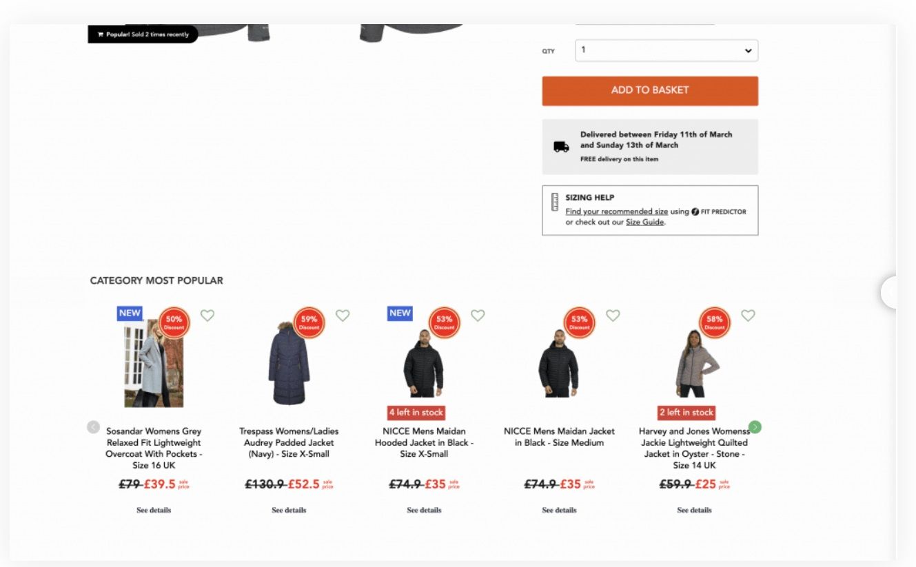 💡Another best practice that is used by other brands is setting up product recommendation pop-ups on their category pages to reduce drop-offs and drive more revenue.
