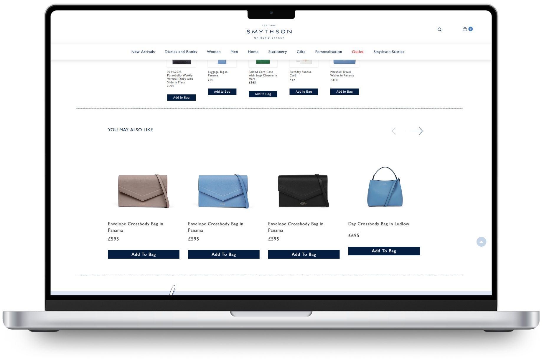 ➡️ For example, Smythson used Nosto, a real-time product recommendation software, to set up multi-page product recommendations.