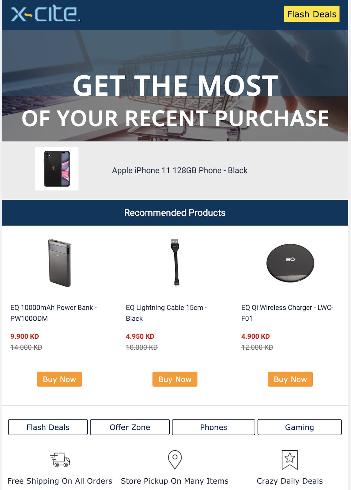 After a shopper has converted to your store, you can set up follow-up emails with complementary product recommendations.