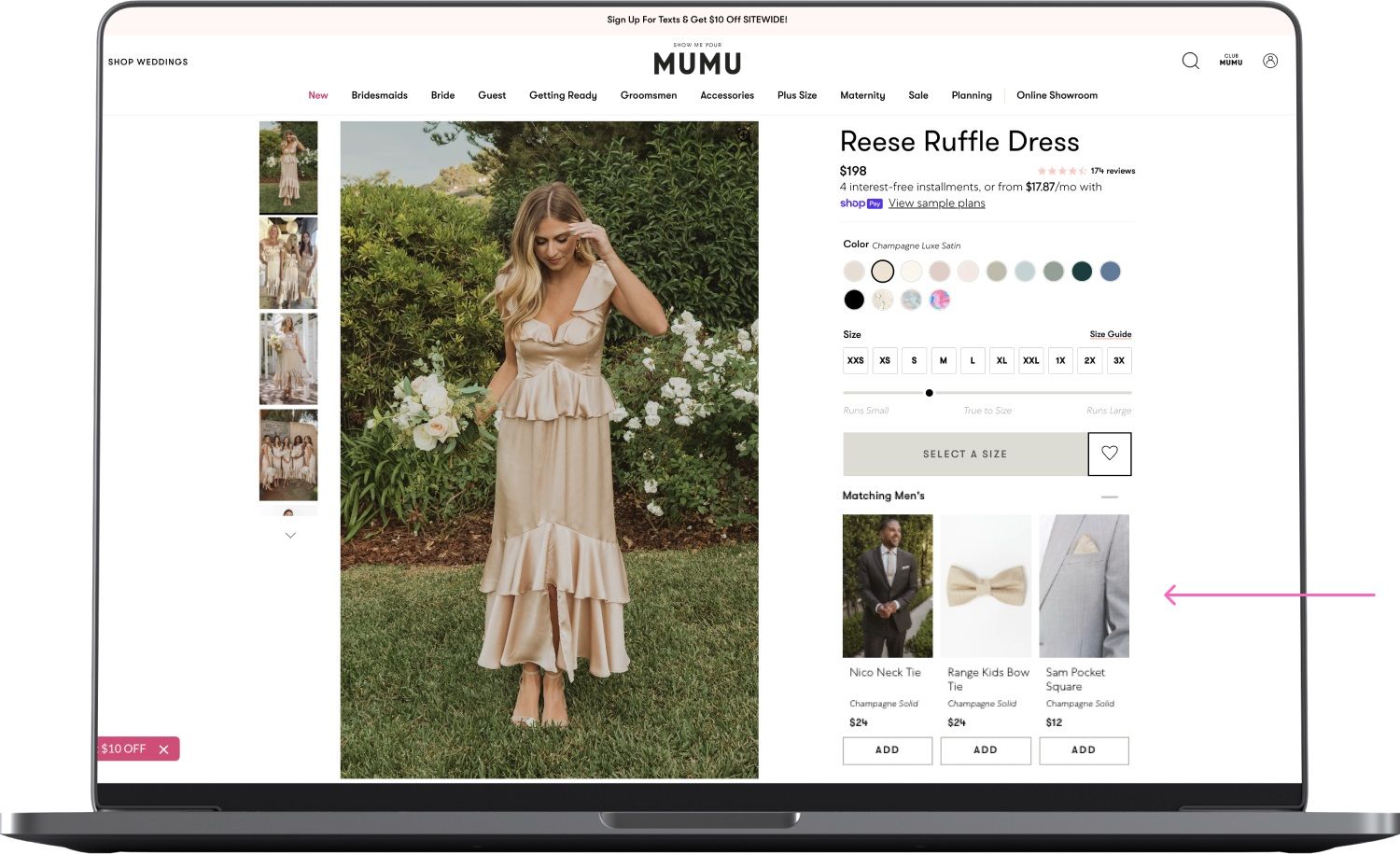 These real-time recommendations enable shoppers to curate the entire wedding party ensemble while boosting AOV for the brand.