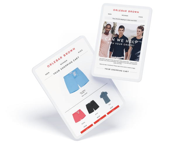 Another example is Orlebar Brown, who incorporated product recommendations via shopping cart abandonment emails.