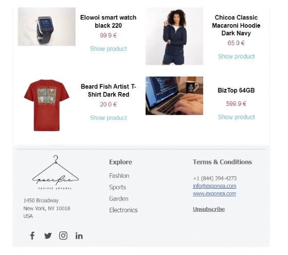 💡These emails do not have to be crammed with dozens of products. You can design your emails with 2-3 spot-on recommendations.