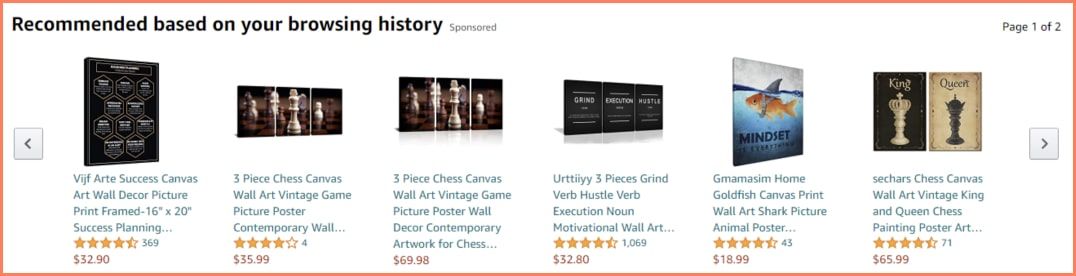 Amazon has designed its category page recommendations to promote high-margin products that are based on the shoppers’ browsing history.