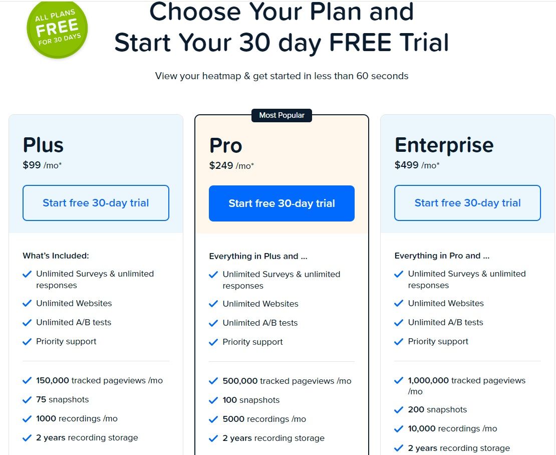 Crazy Egg offers three paid tiers: