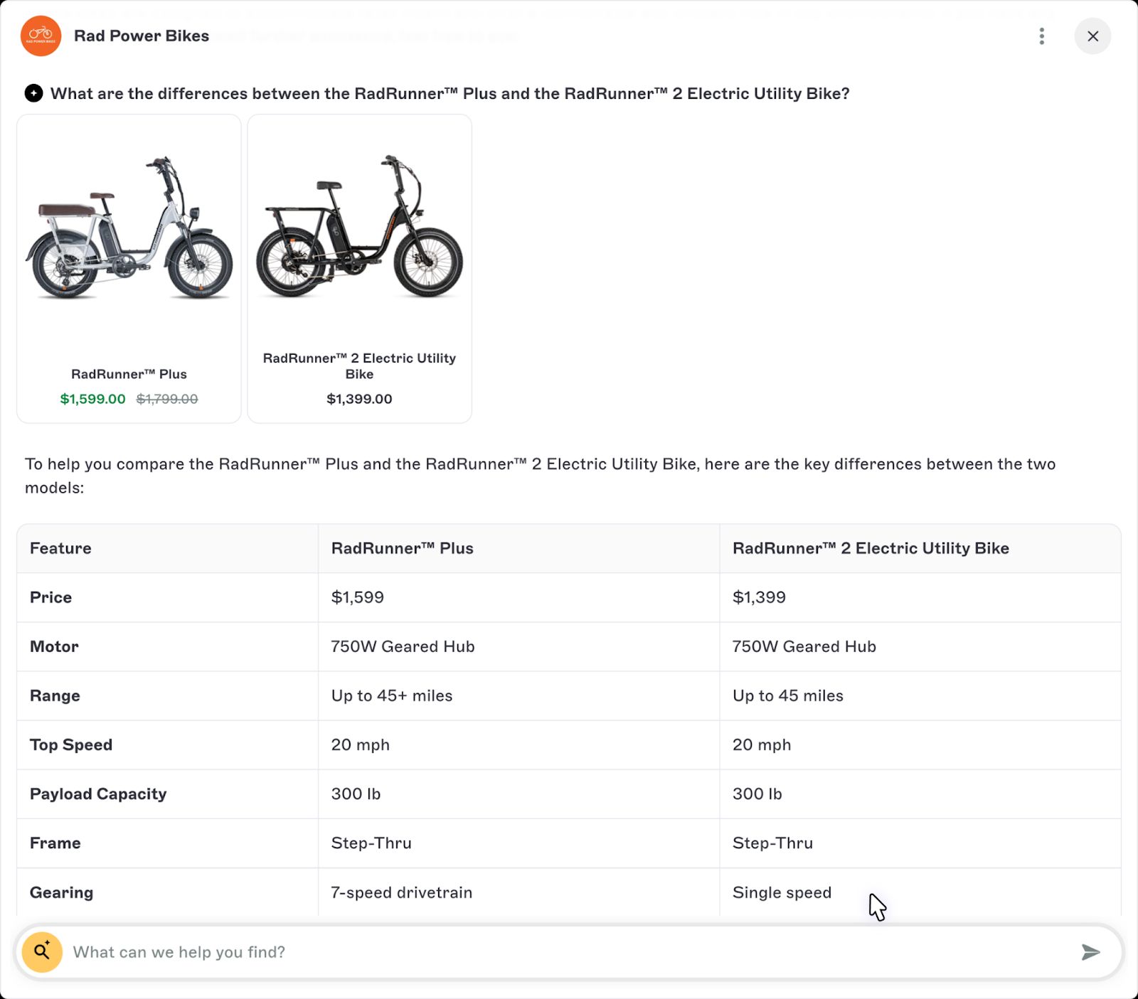 The conversational experience lets your customers find the right product for their needs.