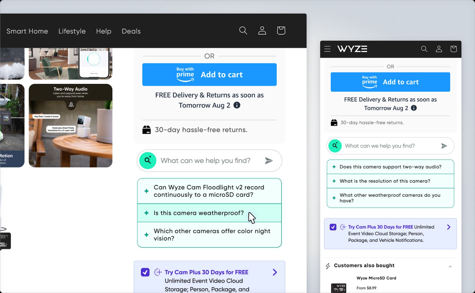 Wyze used Big Sur AI to help shoppers reduce uncertainty before purchasing specialized products.