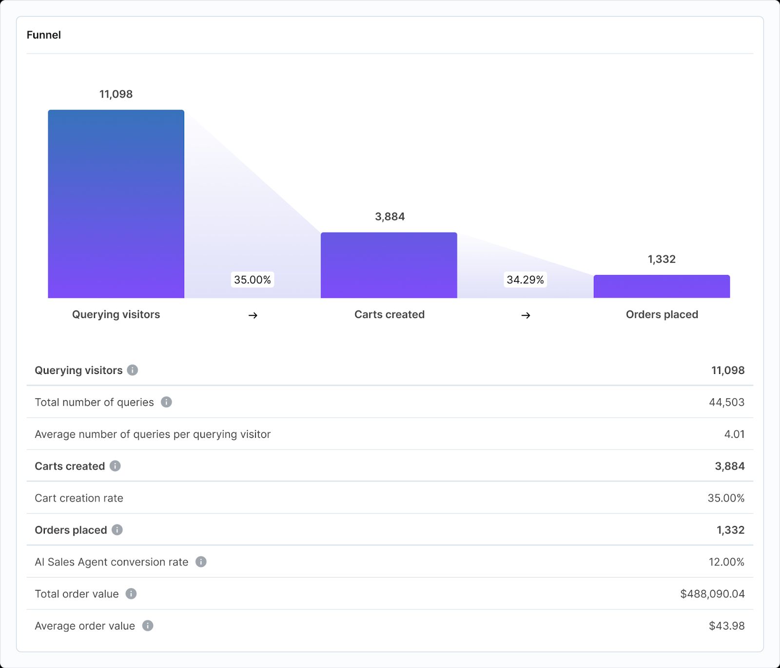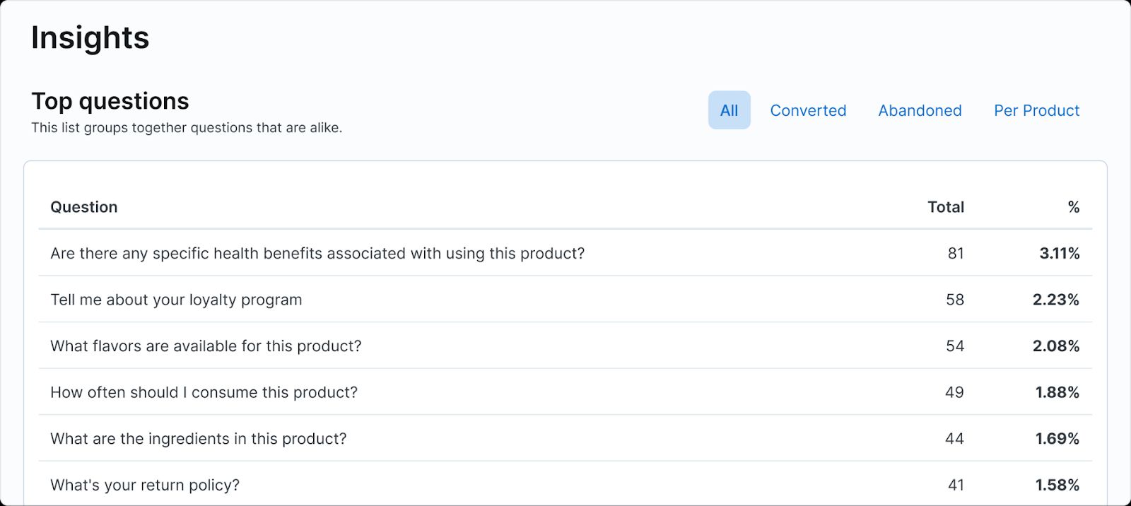 You can also get insights into what questions lead to conversions vs. cart abandonment ⤵️