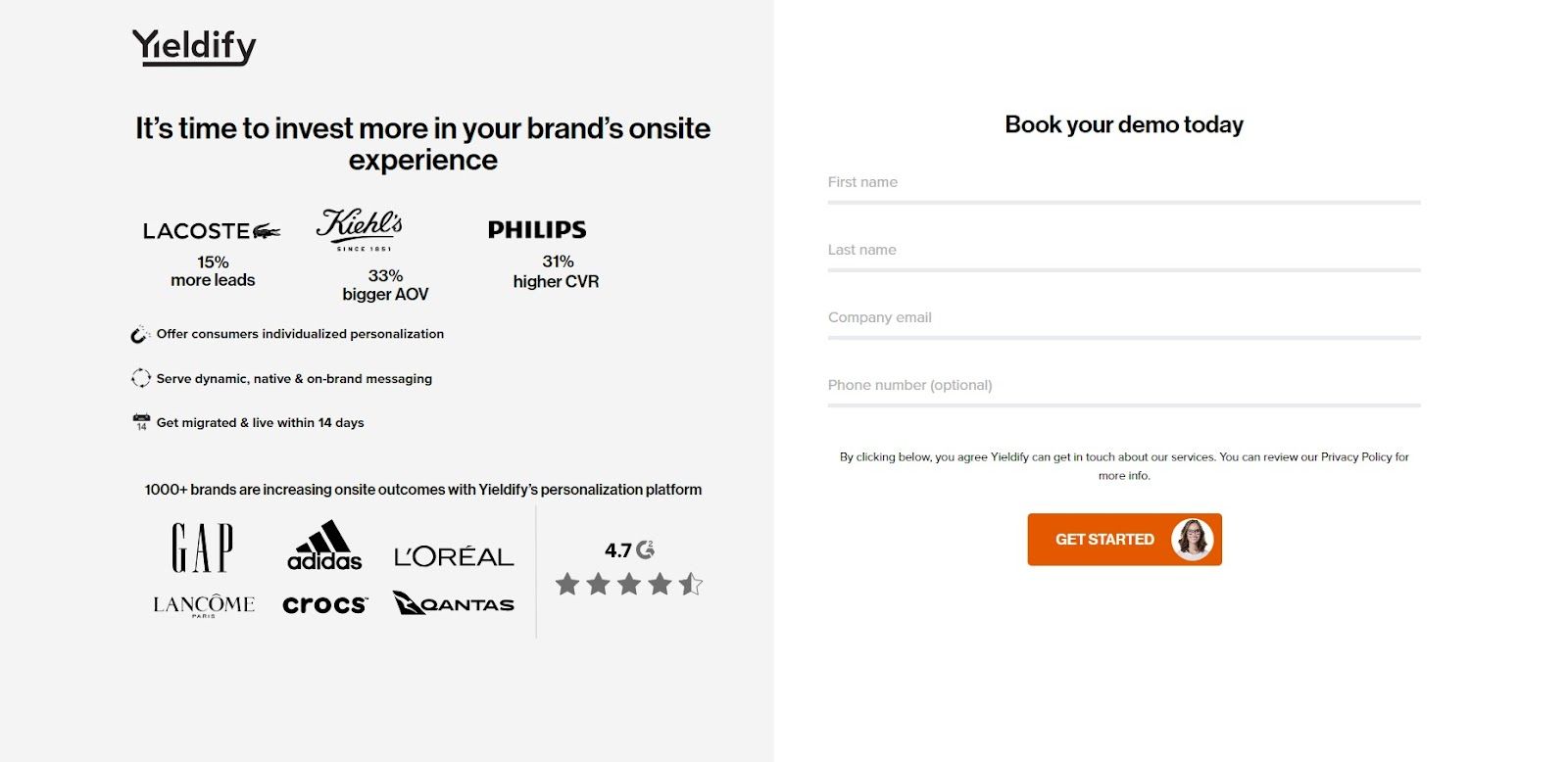 ➡️ Yieldify helps you optimize your site’s conversion rate by personalizing the on-site customer experience with custom business rules. Pricing is custom.