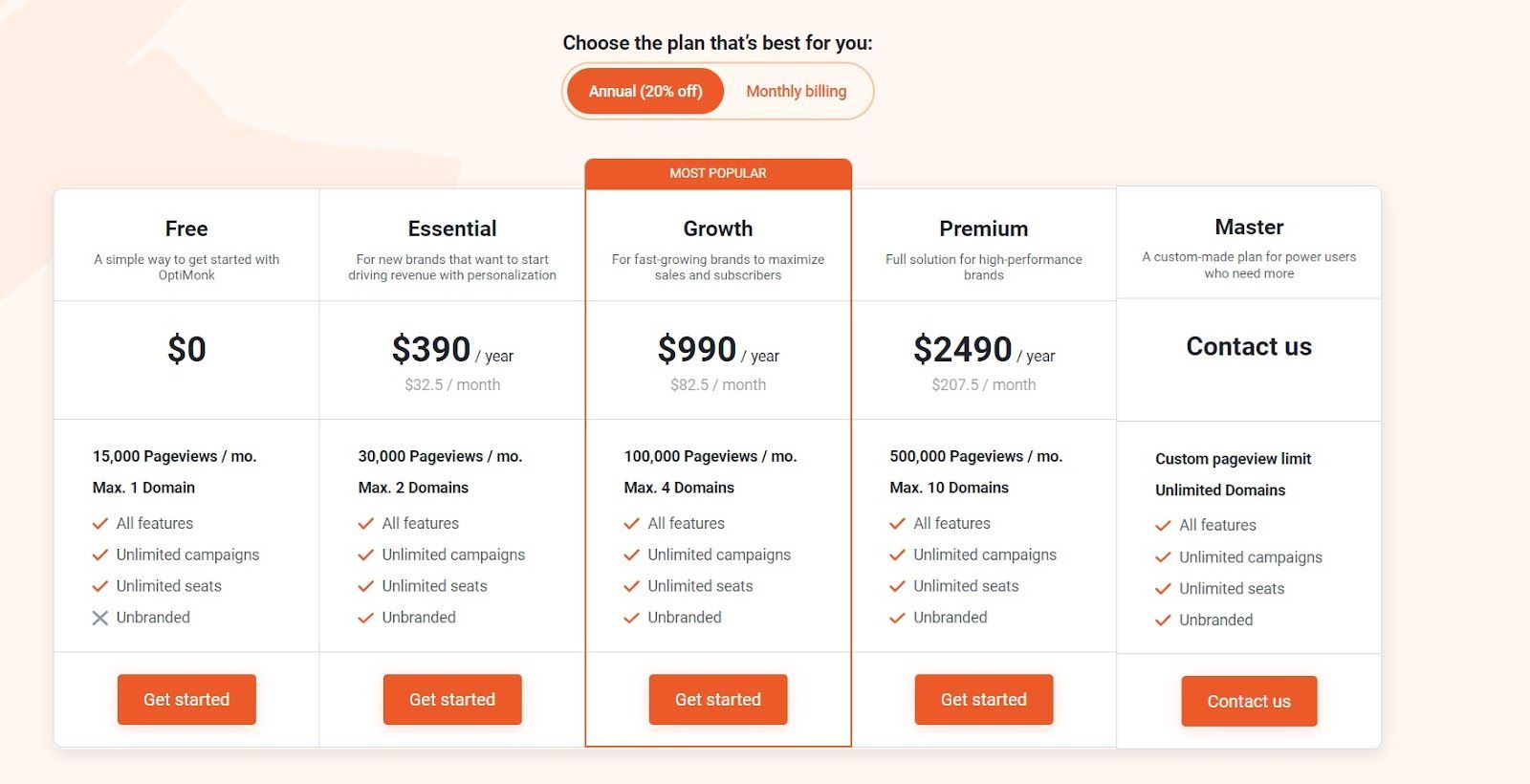 There are three paid tiers. Assuming your brand has 50,000 monthly visitors:
