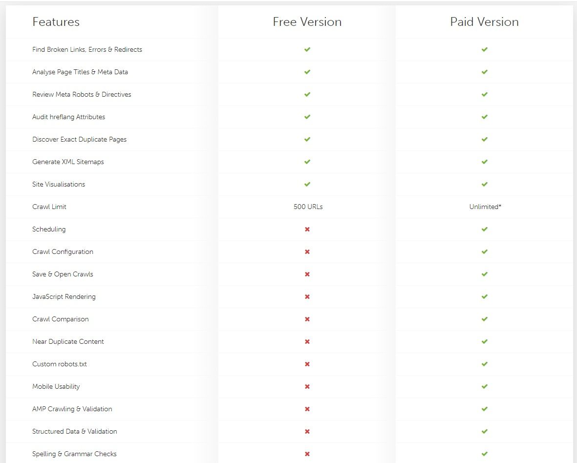 There is only one paid ScreamingFrog plan, a license that costs $259/year for every seat and includes all features.