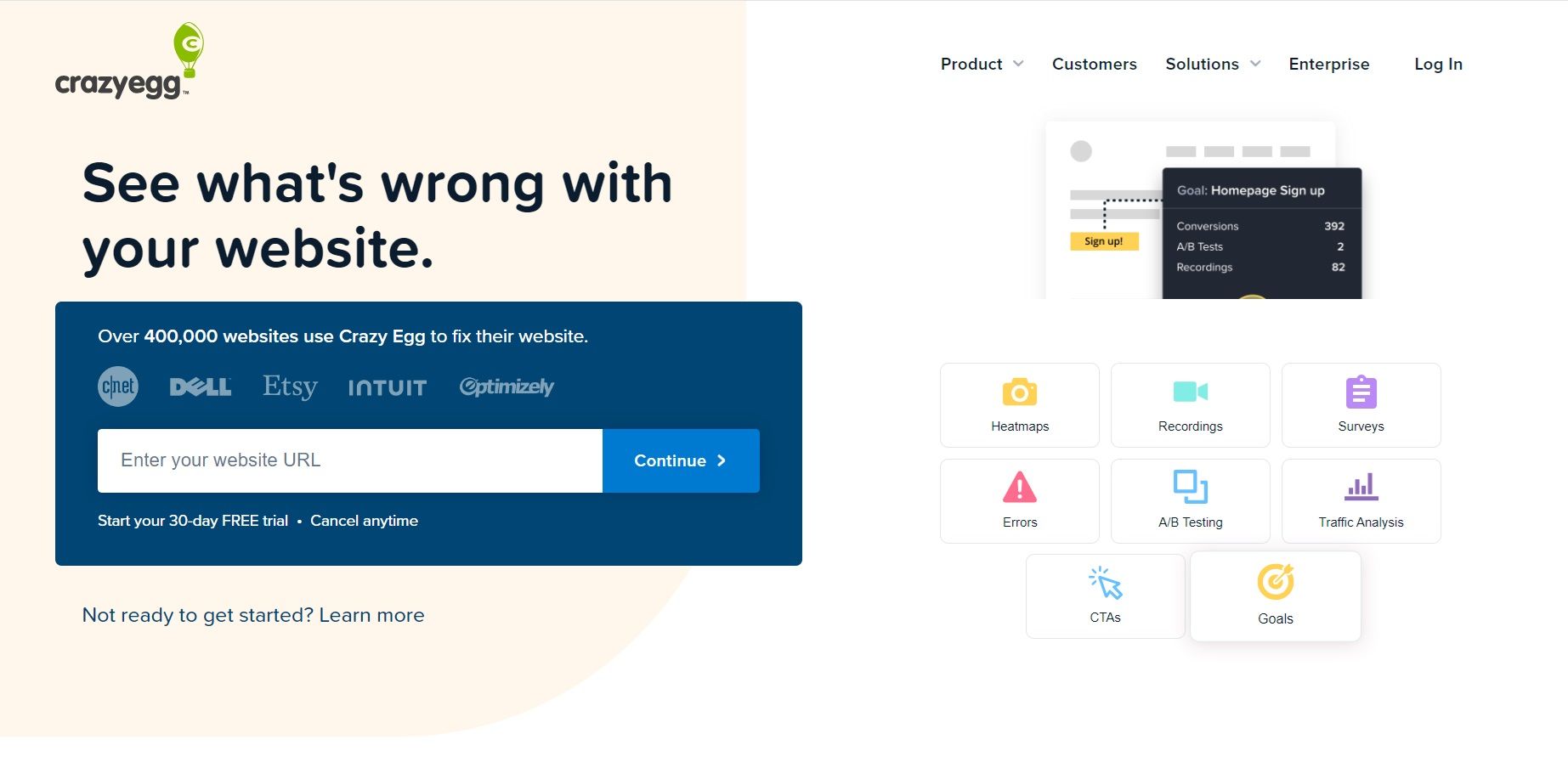 The tool gives you access to heatmaps and recordings and lets you access A/B test landing pages.